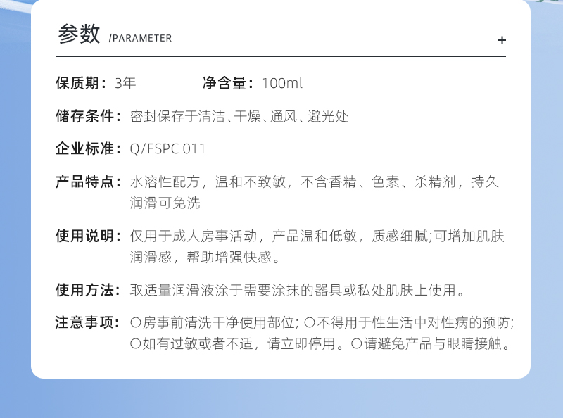 持久爽滑,溫和不致敏,不含工業(yè)香精、色素、礦物油、殺精劑等有害物質(zhì)