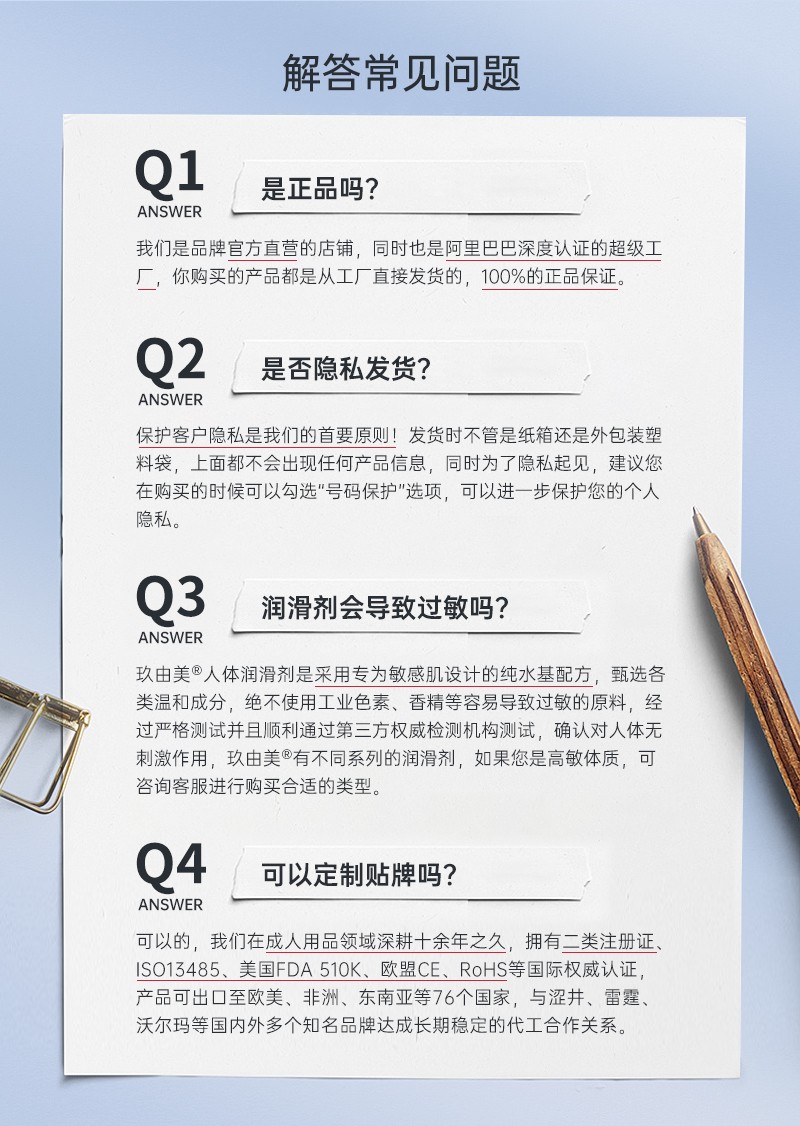 嚴格按照GMP生產(chǎn)規(guī)范!生產(chǎn)前原材料檢測,確保原料合格。生產(chǎn)中半成品檢測,確保生產(chǎn)過程無污染。生產(chǎn)后產(chǎn)品檢測并且出具出廠檢測報告,確保產(chǎn)品符合標準,從原料到成品層層把關,確保每一件均為精品。仿生體驗,與人體愛液無異